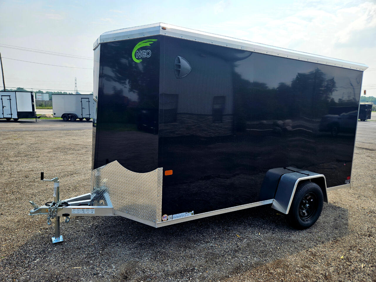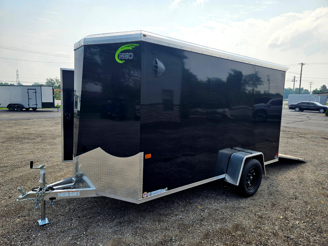 Brand new 2026 NEO Aluminum 6x12! Top shelf quality all the way! This promo package gets you over $900 in free upgrades!!!! *NAV126SR6 NEO trailer *2990lb spring axle *FREE NXP ramp door upgrade!!! *FREE Rear spoiler upgrade!!! *CABLE-LESS ramp door!!! *Side air vents *Interior dome light w/wall switch *3/4" Exterior grade plywood floor/ramp *3/8" plywood walls *RV door/keyed entry *Screwless .030 exterior metal *Strong radius roof line *Add your choice of aluminum wheels for $250