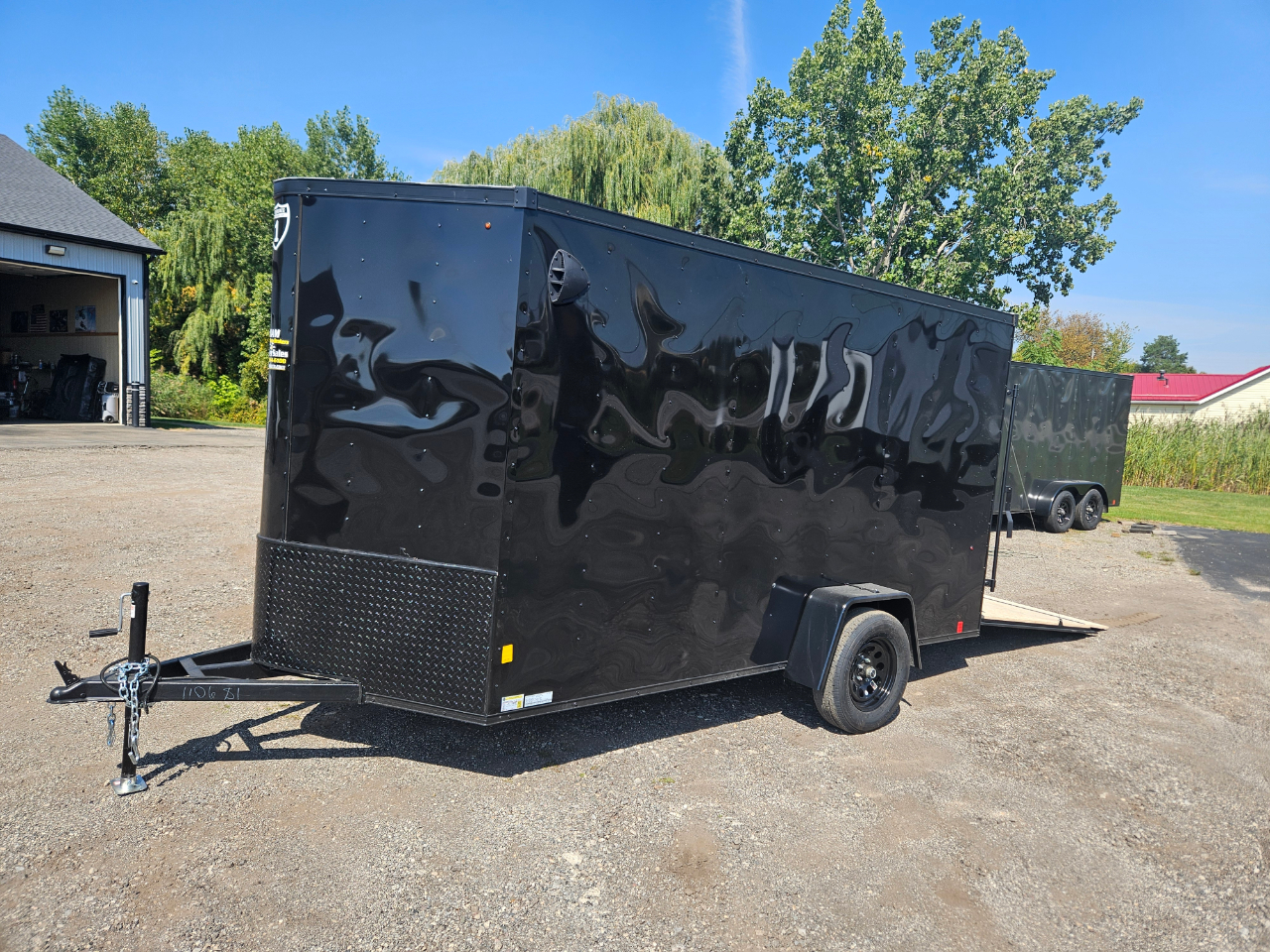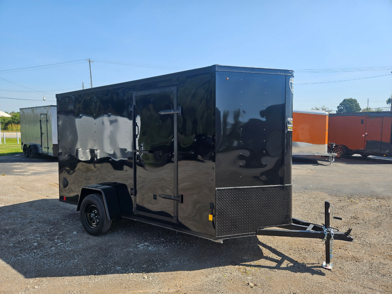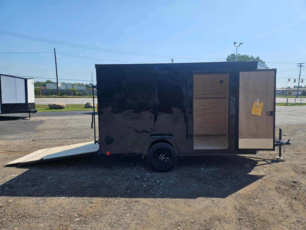 NICE! 2026, Michigan Made Interstate-1 6x12 trailer! Excellent motorcycle/kayak/golf cart trailer! Or any other storage/transport use you need!!! Roughly 2000lb payload capacity! *SFC612SAFS 6x12 Enclosed Trailer *+6" Extra Height, 6'-6" interior *Extended tongue, sturdy triple tube *Keyed entry side door *3500lb spring axle *Ramp rear door *Side air vents