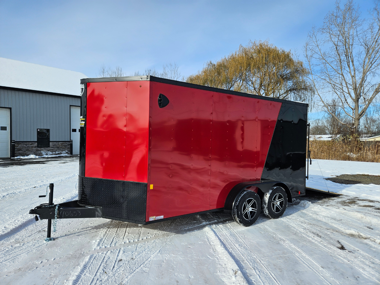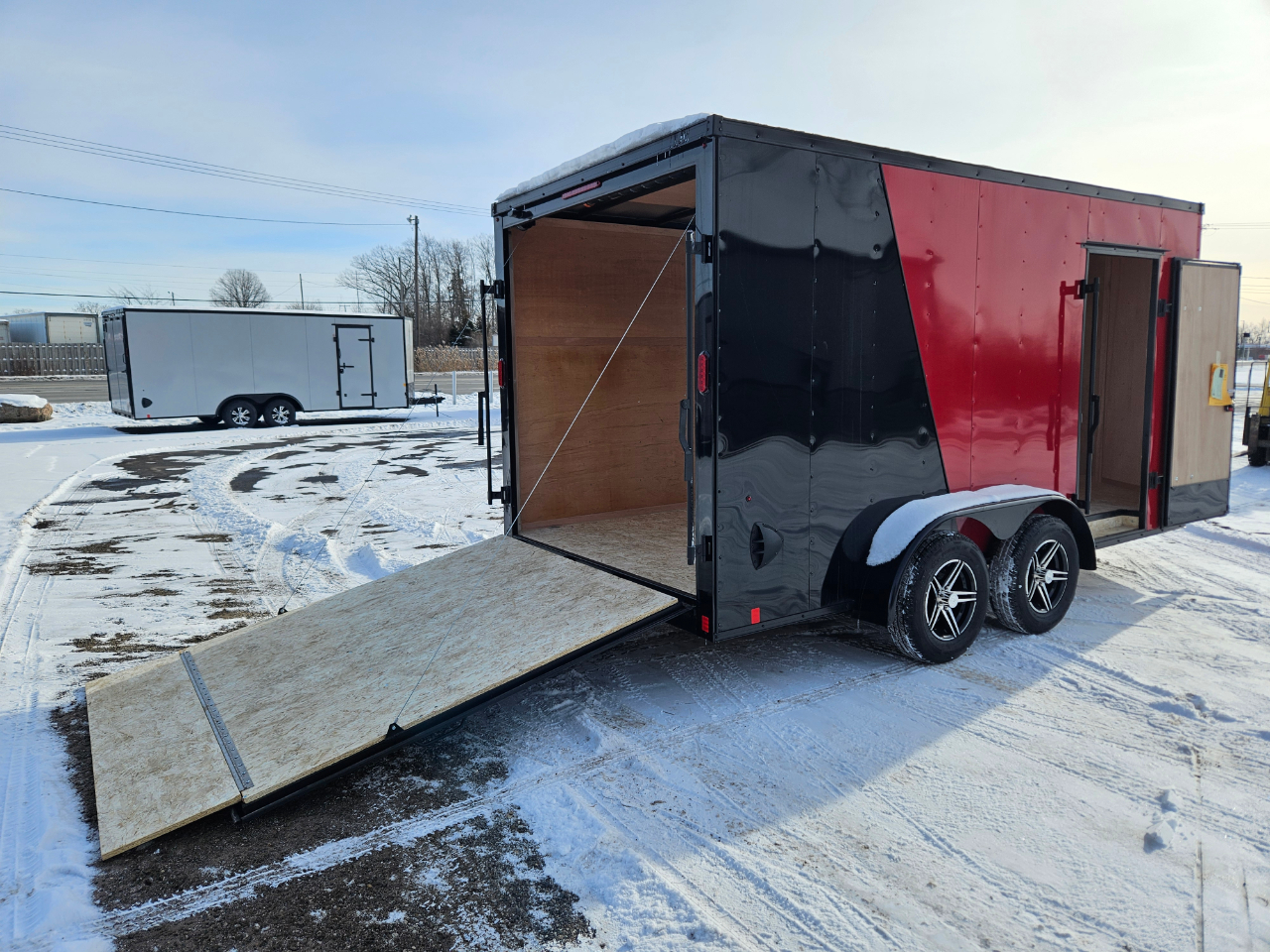 Very cool 2026 Interstate-1 trailer. Built right here in Michigan to help support our economy! Sturdy frame, to handle any need you may have!!! *SFC714TA2 - 7000lb GVWR *Blackout Pkg!!! *Two tone .030 exterior metal *Tandem 3500lb spring axles *Electric brakes to all 4 hubs *6" I-Beam sub frame *E-Z lube hubs *16" on center floor and walls *Keyed entry side door *Side air vents *3/4" floor and ramp board-weather rst *3/8" plywood interior walls *Dome light w/wall switch