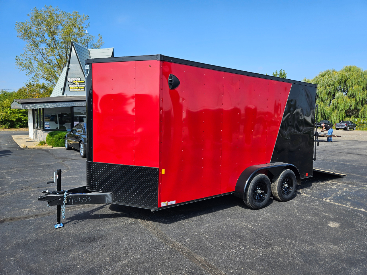 Very cool 2026 Interstate-1 trailer. Built right here in Michigan to help support our economy! Sturdy frame, to handle any need you may have!!! *SFC714TA2 - 7000lb GVWR *Blackout Pkg!!! *Two tone .030 exterior metal *Tandem 3500lb spring axles *Electric brakes to all 4 hubs *6" I-Beam sub frame *E-Z lube hubs *16" on center floor and walls *Keyed entry side door *Side air vents *3/4" floor and ramp board-weather rst *3/8" plywood interior walls *Dome light w/wall switch